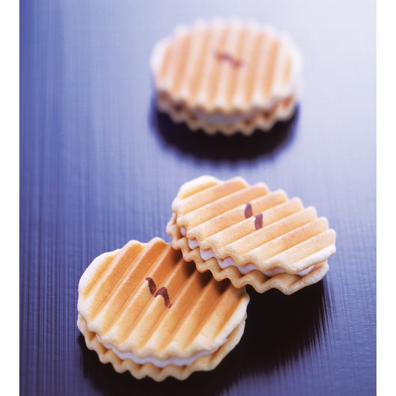 波うつ歯ざわりのよいせんべい生地は香ばしく、まろやかですっきりとした甘さのクリームととてもよく合います。