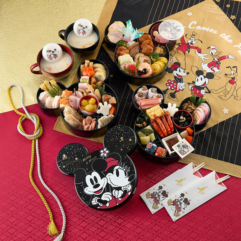 ミッキー&フレンズがキュートな、朱塗りの三段重