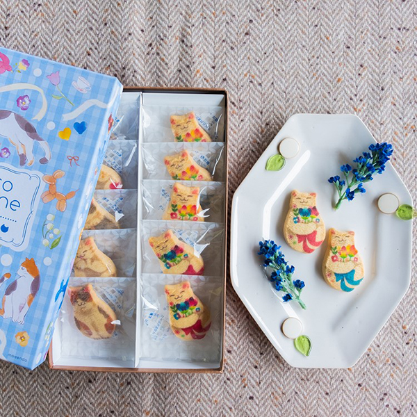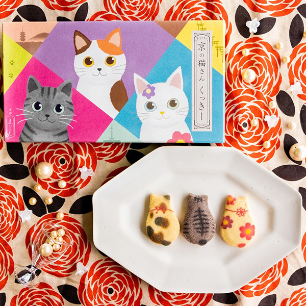 縞柄(黒胡麻):京都タワーのすぐ近く五条で暮らす、気ままな縞猫さん。三毛柄(プレーン):五重塔の近くで見つけた、人懐っこい三毛猫さん。花柄(プレーン):伏見稲荷のお山で暮らす、不思議な花柄の猫さん。箱を開けると思わず笑顔がこぼれるとっても可愛いクッキー。「プレーン」「黒胡麻」の2つの風味。全て個包装で、猫好きな方にはたまらない可愛さです。※こちらは同じ商品を2箱セットでお届けいたします。