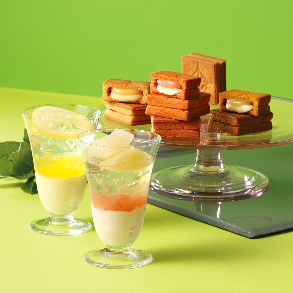 バターサンドに「桃」が仲間入り。新作の3層フルーツゼリーも楽しめる詰め合わせです。