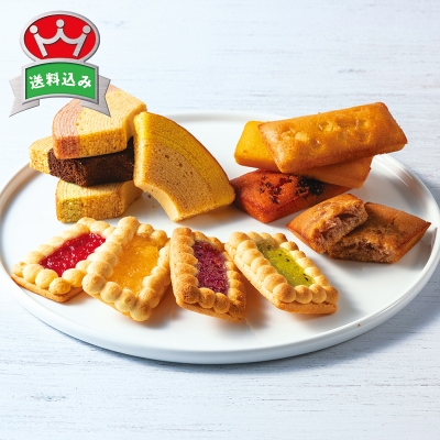 人気の「フルーツクーヘン」や果物のピューレを使った「フルーツフィナンシェ」、彩り鮮やかな「ジェムクッキー」をセットに。