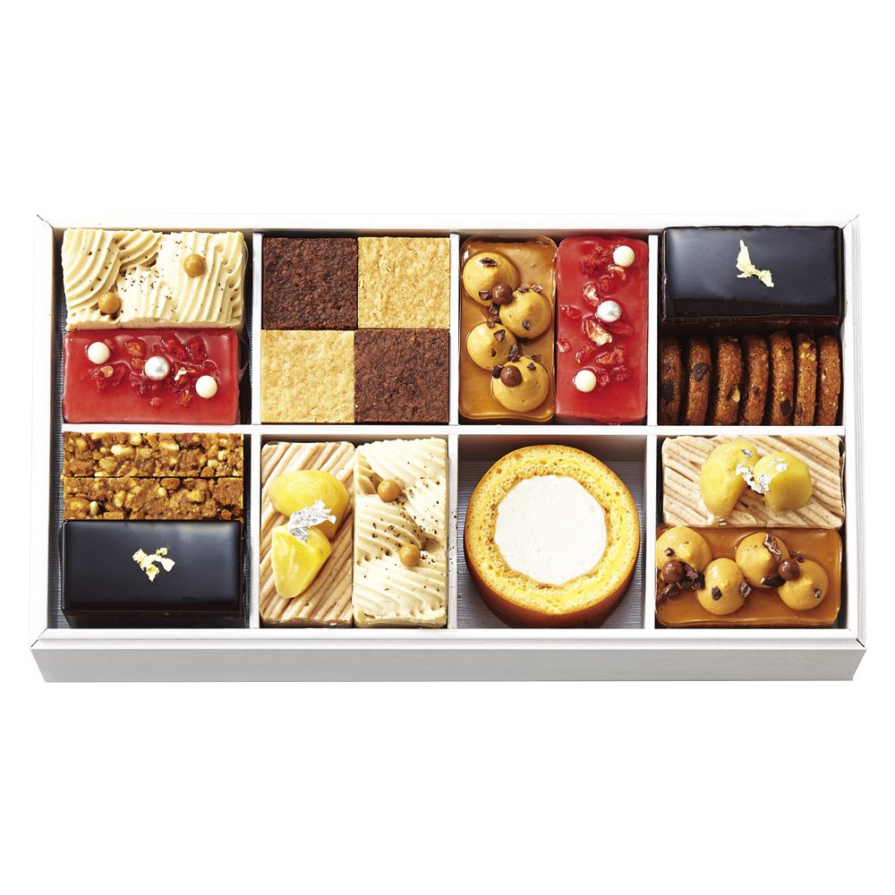 【冷凍便でお届けします。解凍まで時間がかかりますのでご注意ください。】辻口博啓シェフによるスウィーツのおせち。加賀棒茶のロッシェや、ガトーショコラ、ロールケーキなど、パティスリーならではの味わいを詰め合わせました。