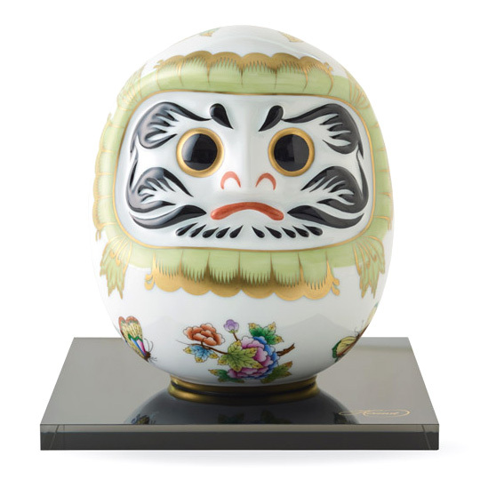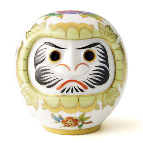 困難を克服し願い事が成就するようにとの思いをこめてヘレンドが日本の縁起物の象徴のだるまをアレンジしました。愛らしいフォルムと丁寧に描かれた鱗のような模様が特徴の華やかなだるまは贈りものにも。