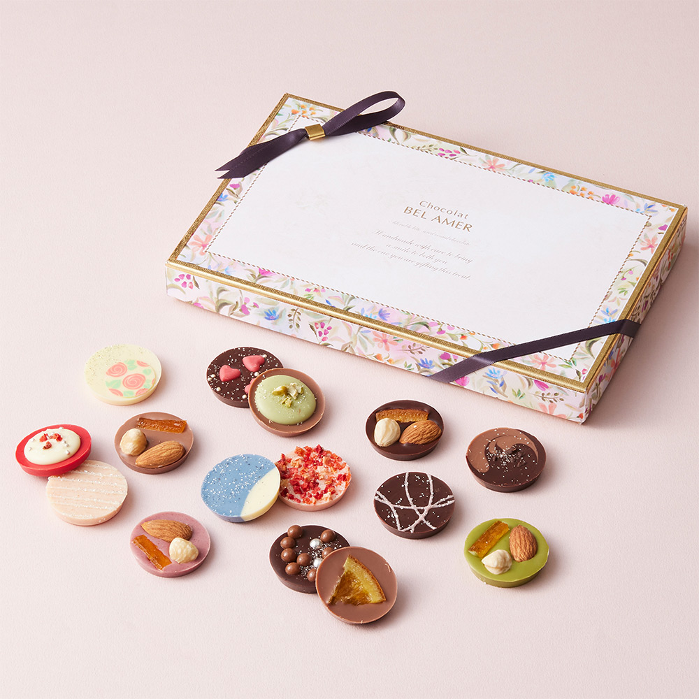 ベルアメールこだわりのオリジナルチョコレートを中心に、様々な素材とチョコレートを組み合わせた職人の技が随所に光るショコラギフト。