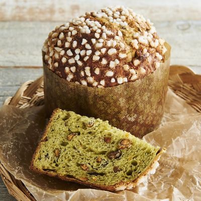 伝統的なパネットーネにピスタチオとピスタチオペーストを練り込んだ当店オリジナルの無添加パネットーネ。ピスタチオの風味が広がります。