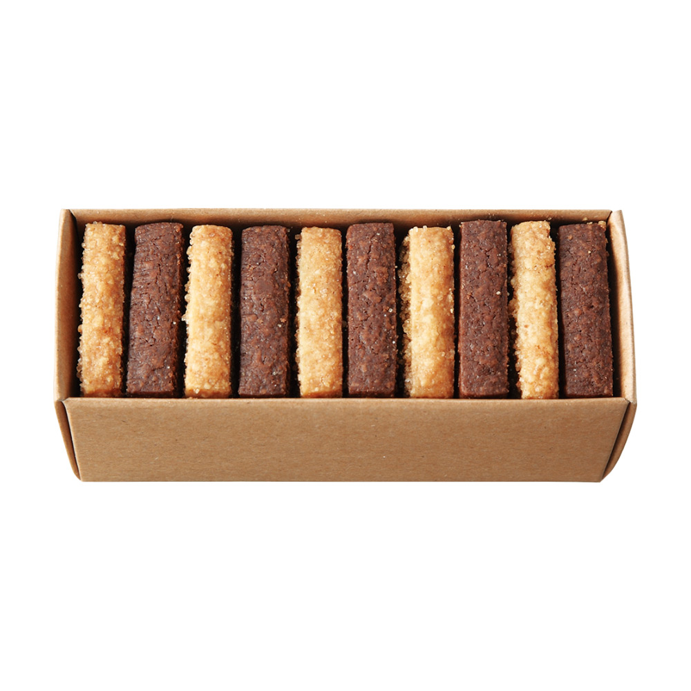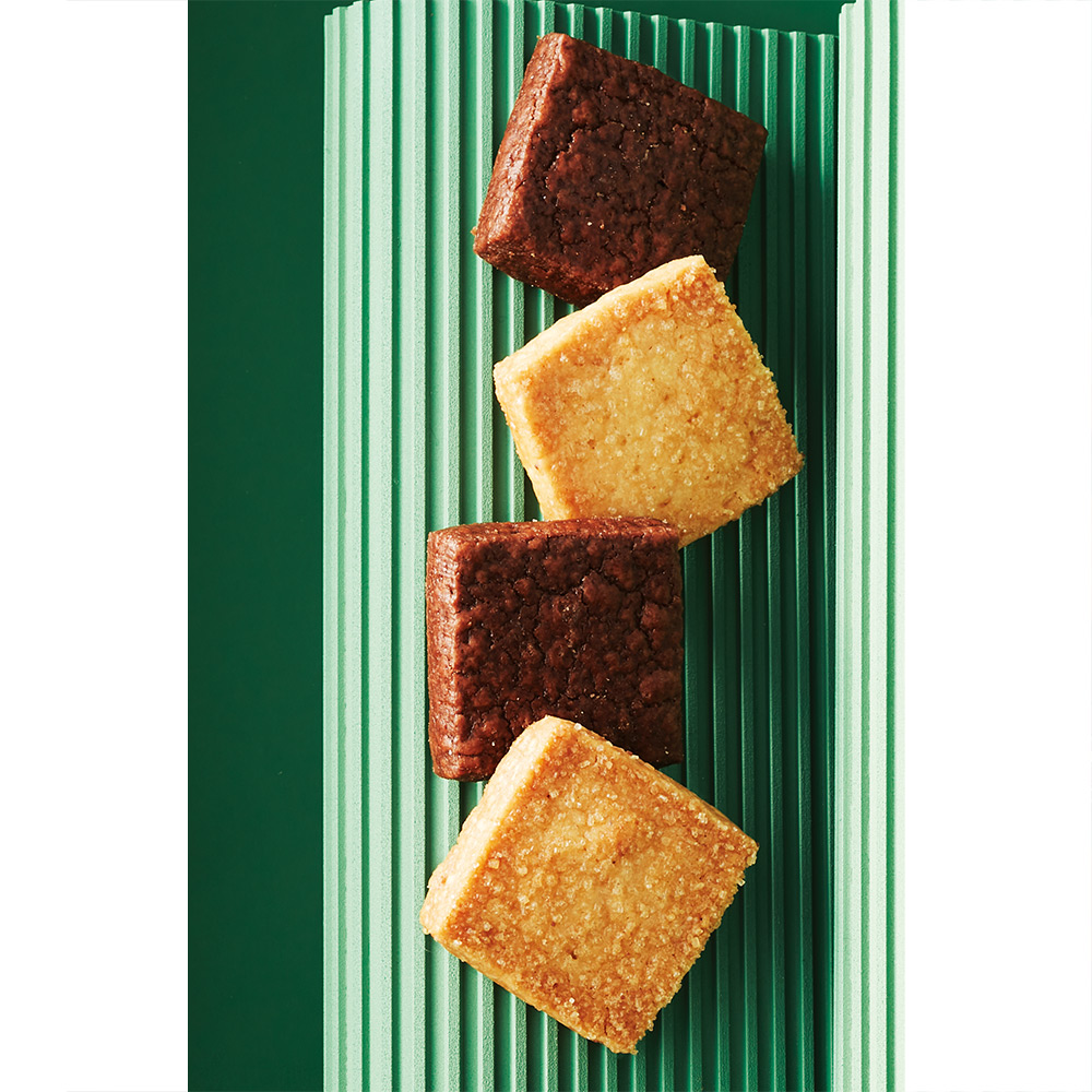 フランス産発酵バターが箱を開けた瞬間に香ってきます。ナチュールは、グラニュー糖のジャリっとした食感とサブレのサクサク感を楽しめます。ショコラは、優しいカカオに塩味をきかせて中はしっとりと仕上げました。