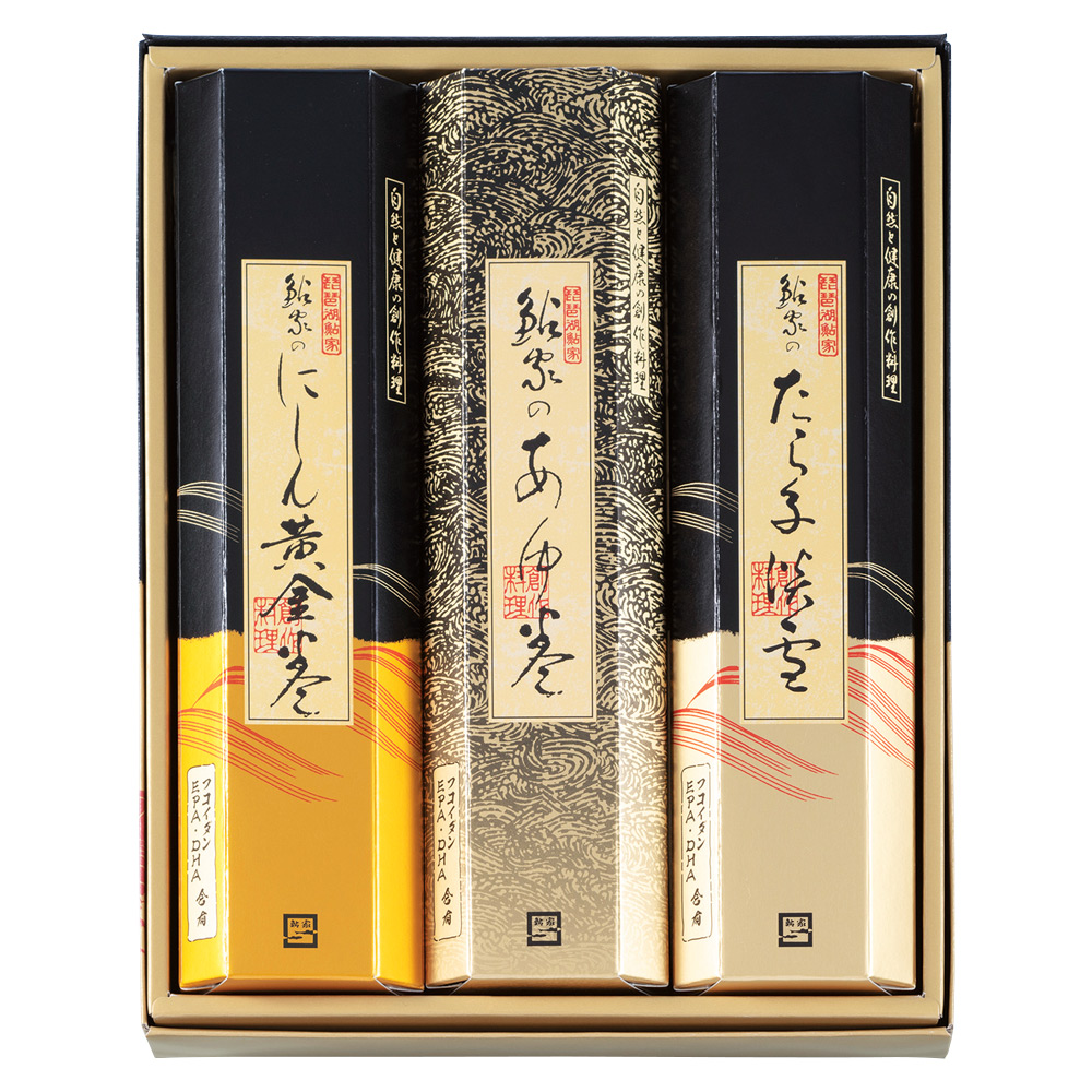 あゆ巻190g、たら子淡雪180g、にしん美味煮80g