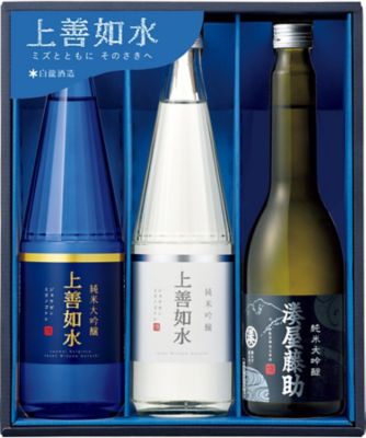 内容量 上善如水純米大吟醸(やや辛口)・上善如水純米吟醸(辛口)各720ml、湊屋藤助純米大吟醸(やや辛口)630ml