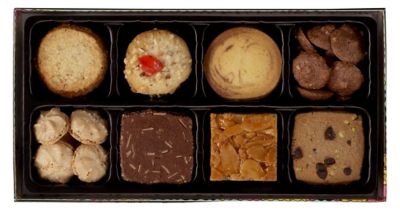 内容量 クッキー詰合せ140g、ココスツィーゲル×8枚、サワースティック×12本、クライネクーヘン(フィグ・ピスタチオ×各3個)